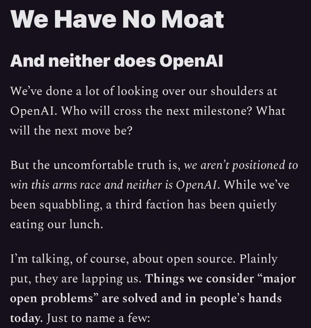So, the other day, google leaked a memo saying: